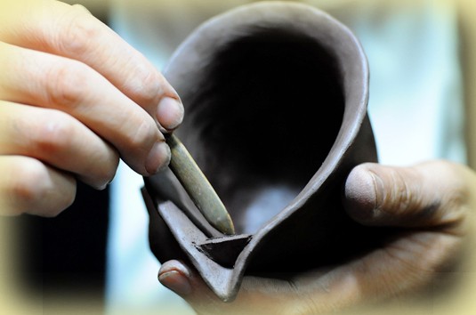 憨态可掬的夫子文创、造型别致的碧筒饮杯、独具特色的微缩景观、惟妙惟肖的人物形象……在印象济南“和为贵”工作室,摆放着各种陶塑作品。