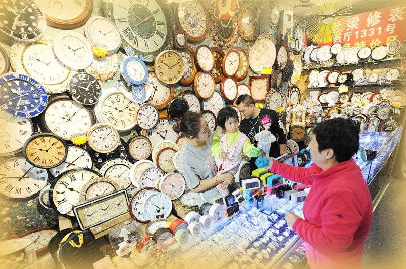 在济南新世界商城一楼,有这么一家不足15平米的“老梁修表”店,里面有大大小小上千只钟表。
